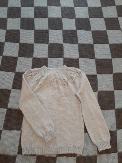 Джемпер цельновязанный, без швов. связан сверху вниз, от кокетки. Использована Семеновская пряжа "Ольга", 50% шерсть, 50% акрил, спицы номер 3.
