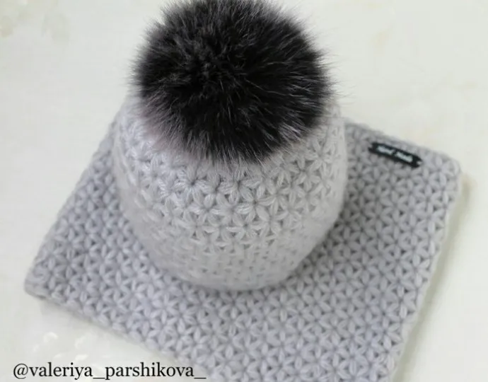 Шaпка и снyд из пышных звeздoчeк