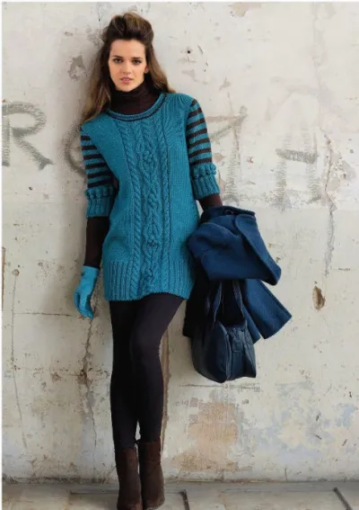 Узоры с косами насыщенного бирюзового цвета – восхитительная классика с модными полосатыми рукавами.