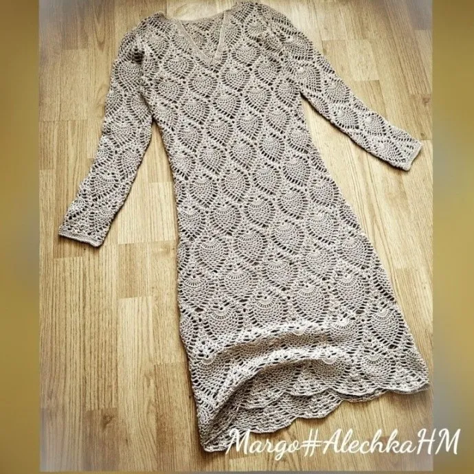 схема не соответствует платью, на ней все ананасы одинаковые, а платье связано с расширением.