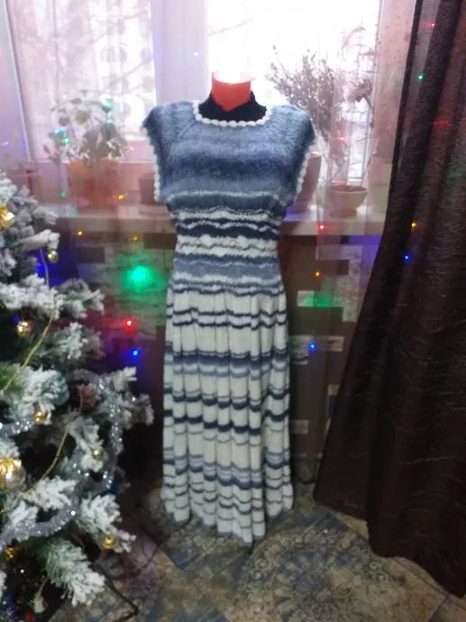 Платье вязала в прошлом году из буклированой пряжи. Вязала для себя к светлотлому Празднику Крещения Господня. Для меня это особенный день. Во первых это День рождения моей бабулечки, бабушка была глубоко верующим человеком, во вторых большой провославный праздник, а большое желание окунуться в купель. Я к этому была готова и готовиться начала заренее. Мой выбор остановался на ЧУДОТВОРНОЙ КУПЕЛИ БЛАЖЕННОЙ МАТРОНЫ МОСКОВСКОЙ. Так как места это святые окунаться можно только в рубахе. А в связи с тем, что делаю я это первый раз, я решила по такому случаю сщить себе рубаху для окунания.