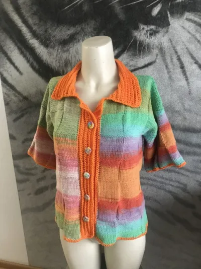 Очень симпатичная кофточка получилась. Но… Мне кажется ей нужно ВТО (влажно-тепловая обработка). Я, если мне лень стирать изделие, иногда прибегаю к холодному отпариванию: кладу связанную вещь между двумя махровыми мокрыми полотенцами и жду, когда они высохнут.
