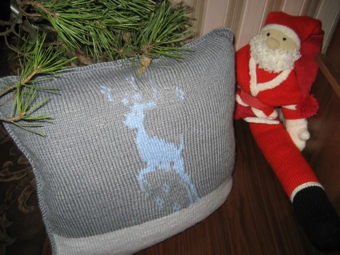 Маленькая новогодняя подушка "Скачущий Олень" и Дед Мороз Бруно