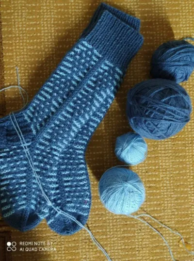 Темная нить - полушерсть, голубая - акрил.