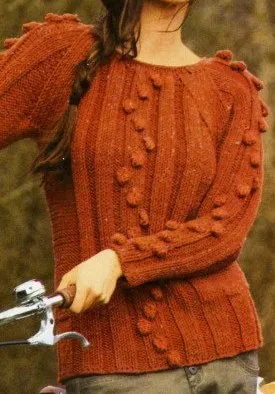 Пуловер-реглан с шишечками спицами