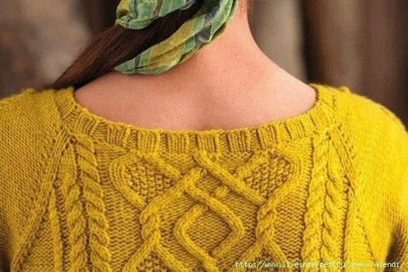 Продолжить как установлено, повторить 2 последних круг. ряда еще 5 раз, закончить 18-м рядом схем спинки и переда и 12-м рядом схемы рукавов = 208 п. (по 63 п. для спинки и переда и по 41 п. для каждого рукава). Перейти на круговые спицы длиной 80 см, когда петель станет больше.