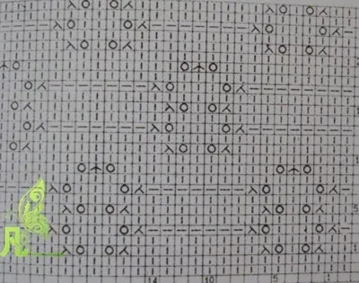 Раппорт узора состоит из 20 петель в ширину + 2 кромочные, и 20 рядов в высоту. В изнаночных рядах, все петли вязать изнаночными.1 ряд: 1 кром, 14 лиц, 1 накид, 2 п. вместе лиц. с наклоном вправо, 2 л...