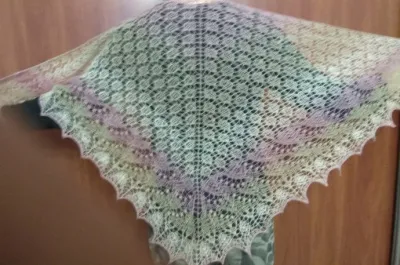 Успела довязать шаль. Шикарная нить Кауни 8/1, спицы 3.5. Ушло 70 грамм. Схемы в свободном доступе. Вязалась очень быстро. Думала, будет небольших размеров, но после блокировки очень даже .