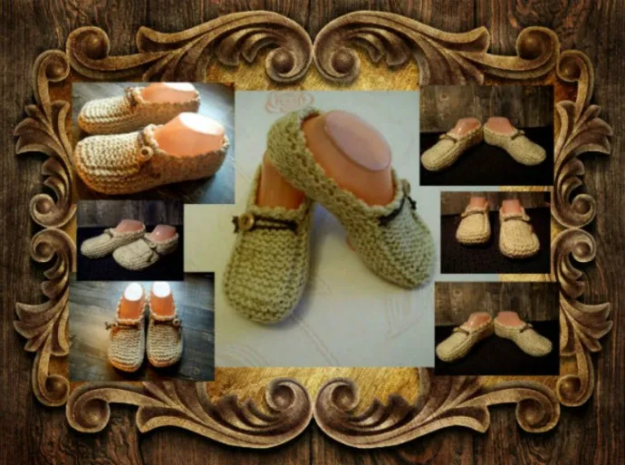 Вязаные мокасины двумя спицами.