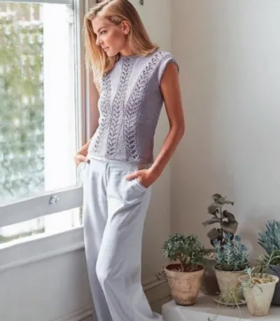 Вам потребуется: 5 [5: 5: 6: 6: 7: 7: 8] мотков бледно-серой пряжи (100% хлопка, 130 м/50 г), спицы №3,25 и №3,75.