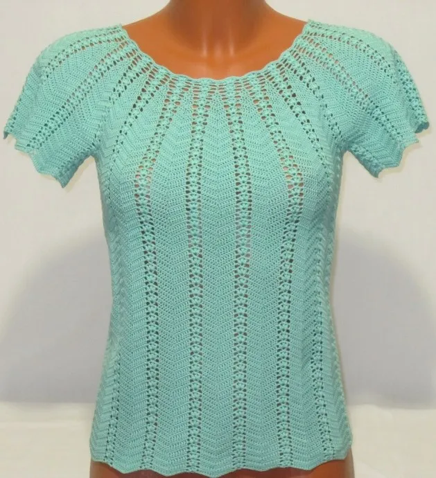 Мятная кофточка крючком