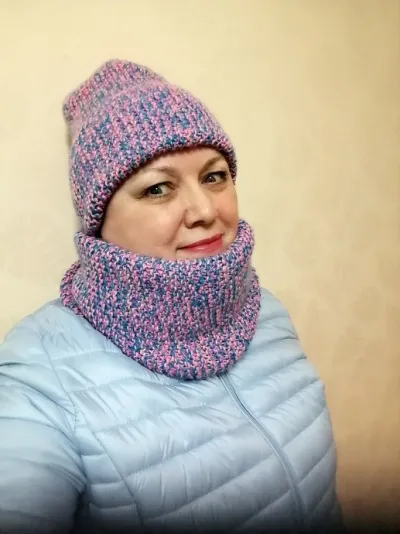очень красивая женщина, но эта шапка ее портит. шапка и шарф тоже красивые, но не для нее