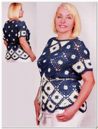 Маленькие квадратные мотивы обвязывают только с двух сторон, и возникает асимметрия, придающая романтичному топу неповторимую оригинальность.РАЗМЕРЫ 36/40 ВАМ ПОТРЕБУЕТСЯ Пряжа (100% хлопка; 170 м/5...