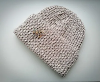 Шапка бини поперечной вязкой с отворотом