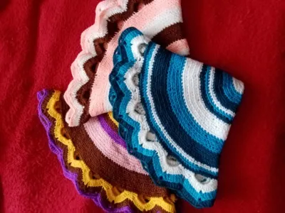 Накидки на табурет связаны крючком из акрила.