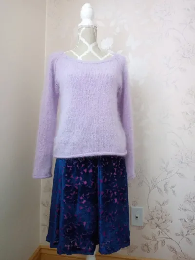 Наконец-то сшила юбку к джемперу. Джемпер вязала долго, распускала раз восемь. То горловина давила, то слишком широкая, то не совсем круглая, то джемпер широкий. Когда нет много опыта, так и получается.