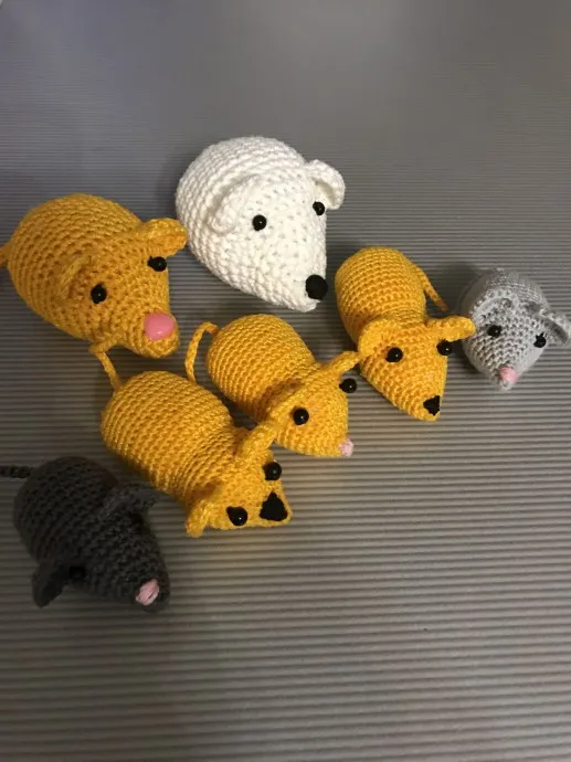 Мышиный Год 2020 закончился. К новому 2020 году навязала много мышек, к каждому подарку и подарочку - МЫШКА на счастье. Да, для многих год сложным оказался... А 12 февраля ко китайскому гороскопу наступил год БЫКА, пора проститься с мышами... Вот они какие были... Практически все связаны из ниток Х/Б, ириса, ушки, носики, хвостики обработаны клеем ПВА (чтобы были жесткими).