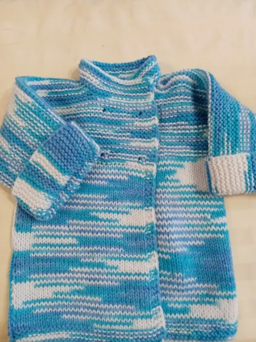 М/К-Детский кардиган с цельновязаными рукавами для малыша до 2 х лет связано спицами
