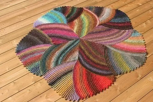 Чем больше мы наберём петель, тем больше будет наш коврик. В этом пёстром коврике сторона элемента около 60 петель, это наше отправное число.