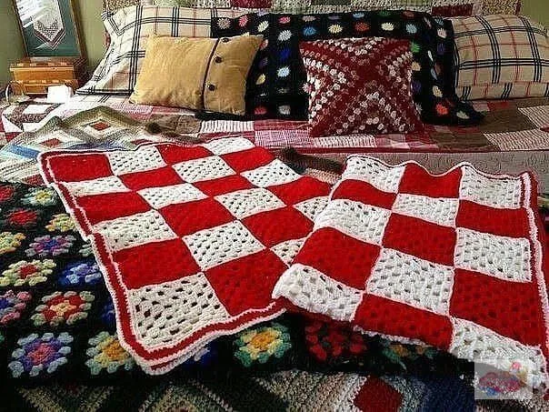 Красивые пледы из вязаного квадрата