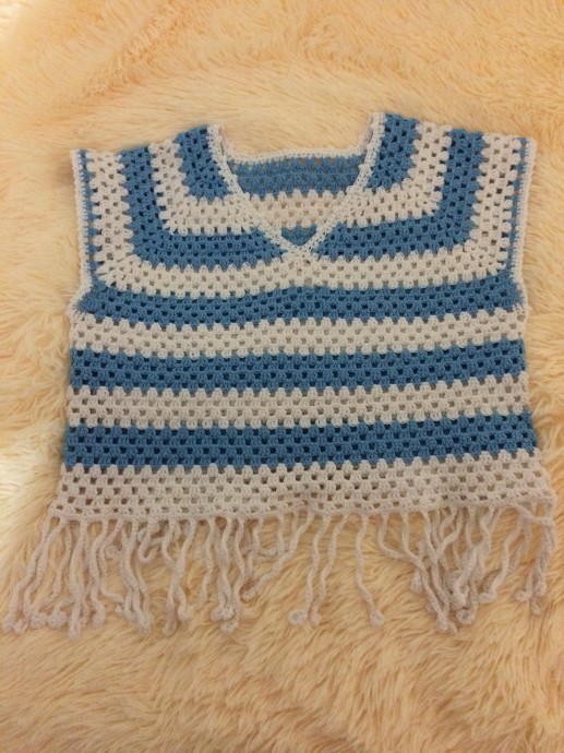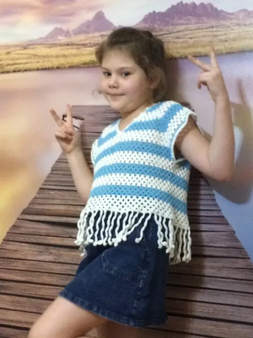 Как-то купила в Фикспрайсе нитки, связала сумку, а из остатков связала топик для Ульяны. Нитки не помню название, хлопок 100%, крючок 1,75.