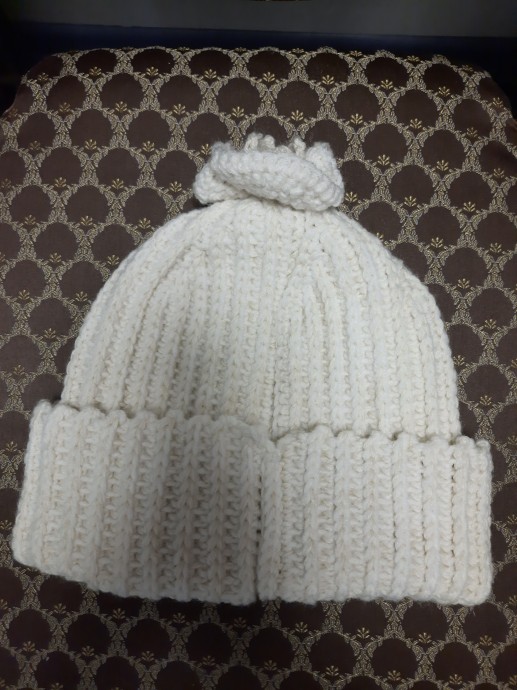 Общий вес шапочки чуть больше 100 граммов. Фотографии почти на коленке, снова на телефон (постараюсь исправиться :))))) Владелица осталась довольна, и это главное. Я тоже вобщем-то получила ещё один новый опыт.