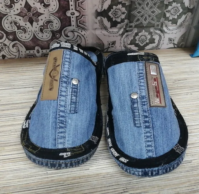 Тапочки из старых джинсов мужу и себе