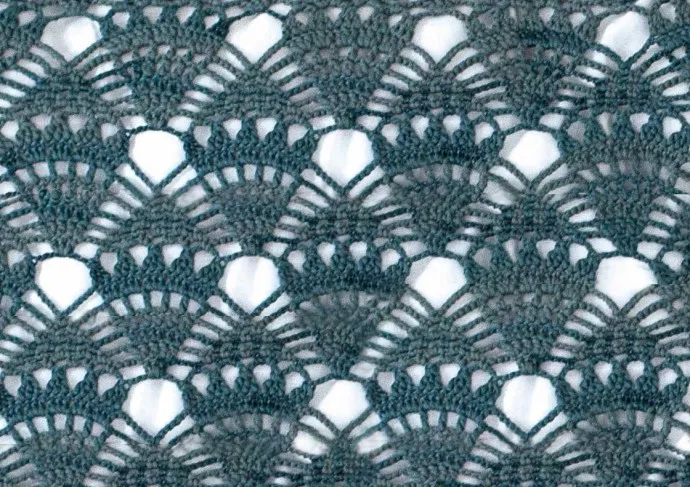Этот ажурный узор красиво смотрится на больших ровных изделиях, таких как палантины, скатерти или покрывала