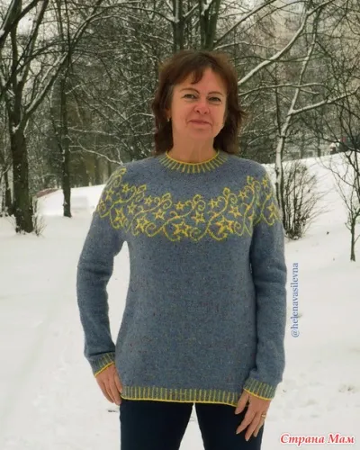 Приглянулся мне свитер (такое определение дала автор) Астрея дизайнера Алены Малевич. Свою же Астрею я назвала джемпером, т.к. всегда думала, что свитер вяжется с высоким горлом. Это оригинал, с которого вязала
