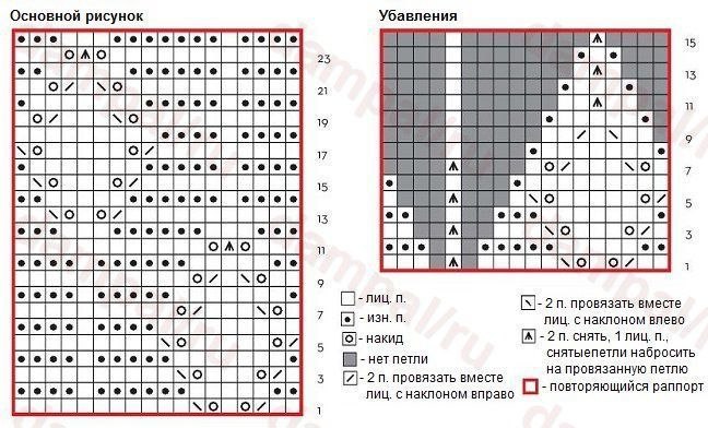 Связать 2 раза раппорт основного рисунка по схеме, всего 48 рядов.