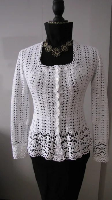 Просмотрела комментарии, но так и не нашла схемок, которые вы обещали. Кофточка просто профессионально связана. Очень интересно как вывязывается на груди. Поделитесь пожалуйста ссылкой, где вы это брали. Буду очень благодарна.