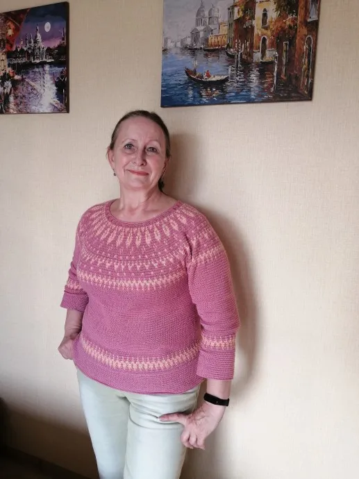 Вымученный долговяз, по другому его никак не назовёшь. Никогда не вязала жакард крючком, но надо ведь всё попробовать. Понравился МК Светланы Заяц Сарны и решила быть лопапейсу, но сразу оказалось не судьба, то нитки кончились, то посыпались заказы, а это дело святое. Вязала в перерывах между заказами и вот он готов.