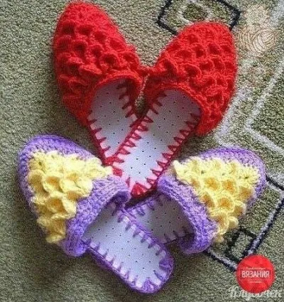 Очень интересные тапки. Спасибо за идею. Свяжу себе, любимой, такие, вот только стельки сделаю по солиднее.