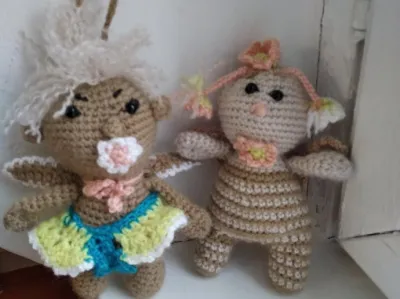 Поехала отдыхать в санаторий, на всякий случай прихватила парочку, троечку крючков, иглы, заготовки для глазок, Нитки - пехорка "детская новинка". Увы, забыла, наполнитель, но мир не без добрых людей.