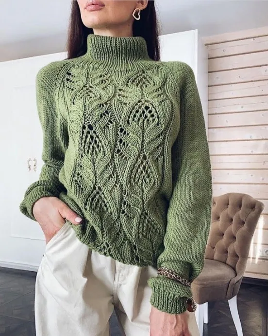Очень эффектный узор. Обратите внимание как сделана горловина.