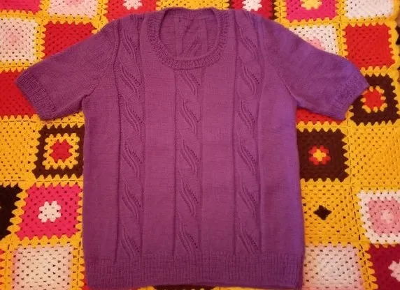 с коротким рукавом. И поняла,что сделала правильно.Осталось немножко,на длинные рукава не хватило бы. Хотела поэксперементировать,