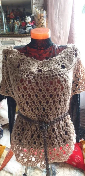 Лежали эти ниточки у меня почти год. 100% акрил с пайетками с голограммой. И длительные выходные сделали свое дело. За объемный проект браться не хотелось... А тут эти ниточки... Хотелось связать что-то легкое и без особых расчетов.