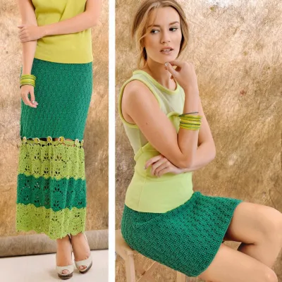 - Пряжа (100% хлопка; 100 м/50 г) — 450 (550) г зеленой и 250 (300) г салатовой; крючок №3,5, 4 и 5;