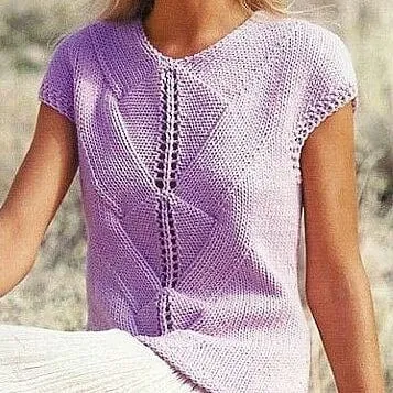 Сиреневый пуловер спицами