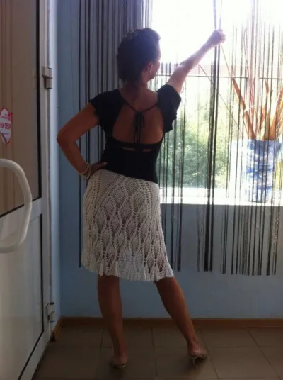 давно я вязала эту юбочку,крючком, сх брала из журнала мод. пряжа ГАРУС, она какая то долговечная. подъюбник тоже из этой же пряжи. носить одно удовольствие. Это я осваивала узор ананасы.