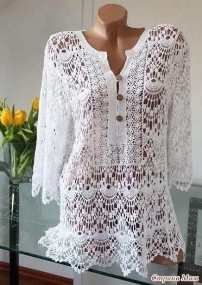 А кто-то вязал уже похожую тунику? Видела оригинал — это кружево фабричное.