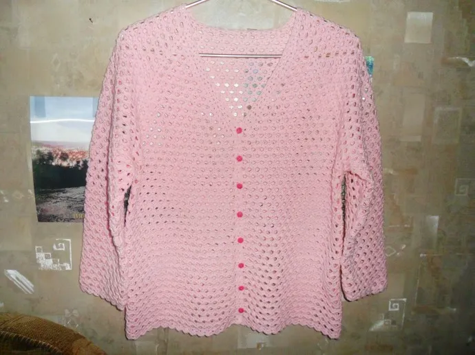 Кардиган крючком 2,0мм..ALIZE DIVA silky effect.100г 350м.color185/100% микрофибра-акрил.Рукав 3/4.