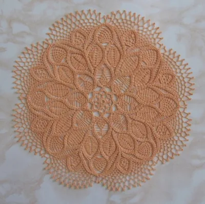 Симпатичная салфеточка с рельефными столбиками. Розовая связана из Денди. Диаметр 39 см.