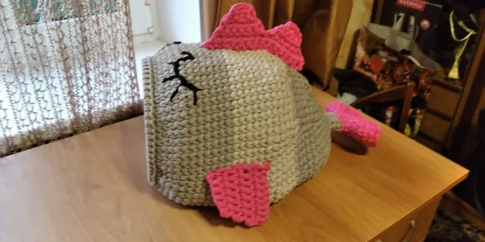 Использовала трикотажную пряжу BISKVIT !00% хлопок. В 330г - 100м. Крючок № 8.