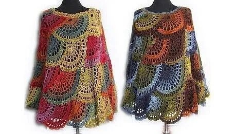 Разноцветное пончо, связанное крючком