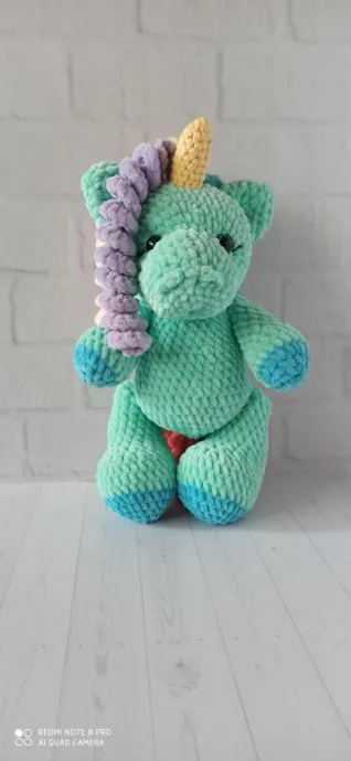 Решила связать ещё и бирюзовую единорожку.Игрушка связана по МК Дарьи Калининой.