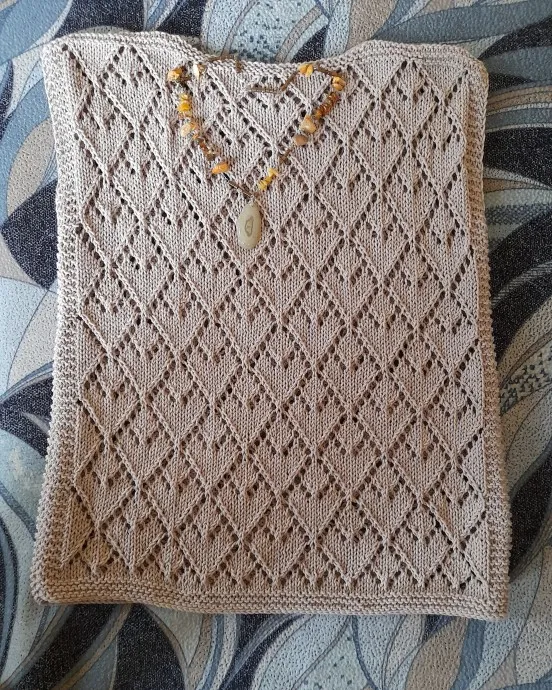 Здравствуйте! Попробовала новые для себя  ниточки и они мне очень понравились в работе! Полотно такое приятное тактильно, не косит. Вязала просто два прямоугольника, применив  новый узор. Спицы номер 3. Спасибо всем заглянувшим.