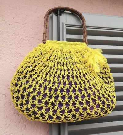 ПЭ шнур, бамбуковые ручки, крючок и.... фантазия. Контрастная по цвету подкладка подчеркивает красоту соломонова узла. С такой сумкой просто невозможно пройти незамеченной