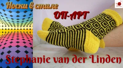 Оп-арт - это стиль, который, "играя" с визуальным эффектом, создает оптическую иллюзию глубины, обьема, пространства. Стефани ван дер Линден виртуозно владеет этим стилем. Соединяя невероятные геометричкие рисунки с техническими навыками вязания,она создает яркие и уникальные модели носков. В этом видео показан алгоритм одних из самых заметных носков Стефани "Binsenкorbchen". В этом случае визуальный эффект достигается с помощью снятых петель. Каждый, кто увлечен вязанием носков, хотя бы один раз встречался с творчеством Стефани. И можно утверждать с гарантией, что даже оставаясь "анонимными", носочки Стефани не могли не оставить след в душе настоящей мастерицы. Стефани- молодой дизайнер, но очень "плодовитый". Из под ее пера вышло много, по-настоящему ценных книг по рукоделию и, в том числе, с моделями ее носочков. Как очень талантлевый человек, который талантлив во всем, она, кроме вязания ,работает в стиле СКРАПБУКИНГ, СТИМПАНК, создает почтовые открытки, коллекционирует кафельные плитки. Все, на чем задерживается взгляд Стефани - становится источником вдохновения, в том числе и для рождения новых моделей носочков, которыми она щедро делится со своими поклонниками. Вдохновляться ее работами можно в instagram и raverly, или преобретя ее уникальные книги.