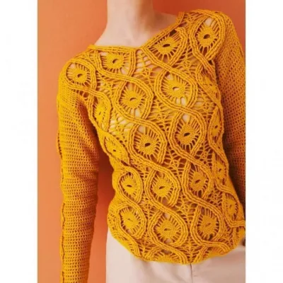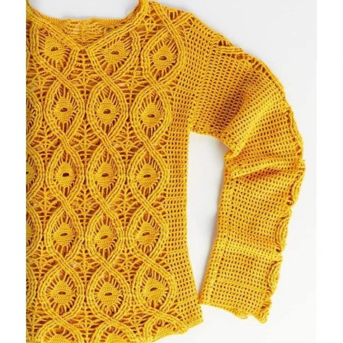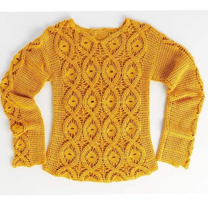 Пуловер крючком, стильная модель ажурным узором